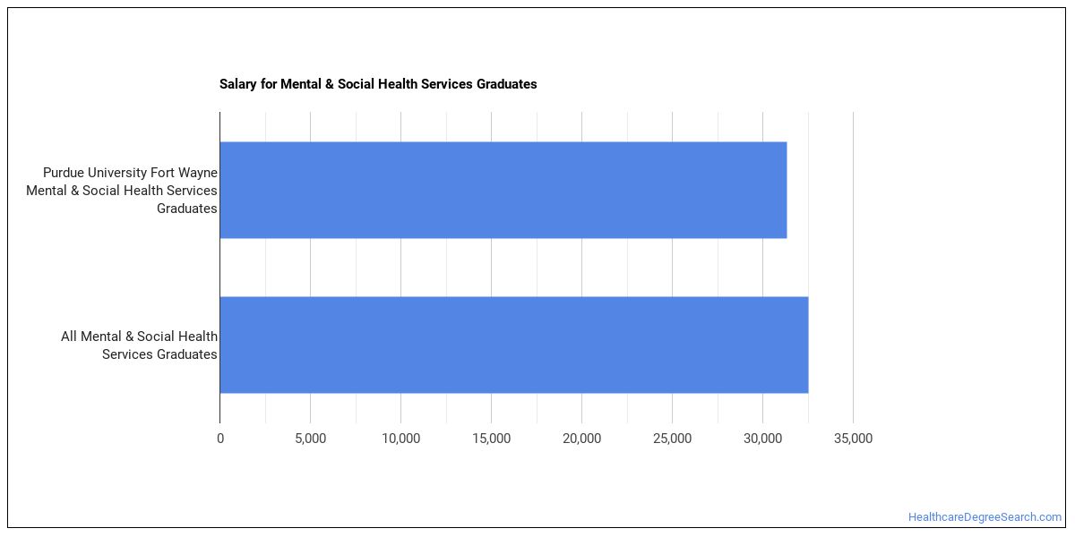 The median salary of mental health services students who receive their bachelor's degree at PFW is $31,339. This is less than $32,530, which is the national average of all mental health services majors in the nation who earn bachelor's degrees.